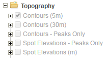 Note: Some map layers are designed to only display in the map at certain map scales (See Map Scale). These map layer(s) will appear grayed out in the TOC if the map layer(s) are not available at the current map scale. See image below.